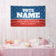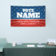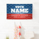A stunning stars and stripes campaign banner with very traditional features and icons. A neo-classical and federal design with faded blue stars and a ray of red stripes in the background. This upscale design includes a place for the candidates' name, position and website. The bold white type makes this an easy-to-read design with all the information needed to promote your candidate or issue. A great design for local elections - city council, school board and other regional positions.