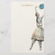 Possible the most unusual ballerina stationery ever, for the upper level girls, or for pure balletomanes. Beautiful watercolor Principal dancer in Persian costume with peacock feathers frames just the right amount of space for penning off notes about summer program on a cream paper print image stationery background.