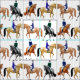 Original find art pattern of classical Dressage horses and riders by equine artist and designer Carolyn McFann of Two Purring Cats Studio printed on quality cotton fabric for equestrian sport fans.