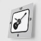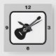 Get a music theme with this acoustic guitar graphic in black and white. This square wall clock is ideal for a music room, teen bedroom, or for any guitar player. You can change the colour background of this clock from the default silver to any other colour in the Zazzle palette -- just click the orange customise button then edit background to choose a different one.