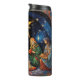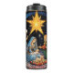 This beautiful and classical illustration depicts the nativity scene with Mary holding the baby Jesus, surrounded by Joseph and the Three Wise Men. The scene is set under a large, glowing star and a starry night sky, with a decorative border. The figures are rendered in a detailed, illustrative style with rich colours and ornate clothing.