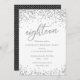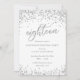 Classy 18th Birthday Party Invitations: Sparkly silver confetti 18th birthday party invitation design featuring faux diamond / bright silver glitter look confetti polka dots. Silver "eighteen" written in  hand-lettering script typography. Contemporary lettering fills out the party details. [Note that while elements of this design will print to look like glitter, no actual glitter or metallic ink is used in creating the invitations - the glitter is a printed effect.]