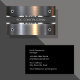 Classy business cards for a construction service designed with cool silver tone digitally printed background art with realistic fasteners that mimic the look of a fastened piece of metal. Created for a contractor, builder, recycling services, or welder. Presented on glossy card stock.