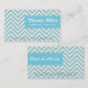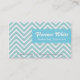 Classy and Elegant, blue and white chevron pattern background. Striking blue banner with stitch effects for indicating details. This striking business card with its pastel colours is ideal for anyone who is looking for a memorable yet professional business card design. Design is suitable for ladies and guys. Pink and Grey version available. Design can be easily customised to your details. Designed by Rusty Doodle.