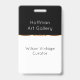 Classy art gallery or museum staff name ID badges in classic black on white with a gold coloured design element that adds that touch of class. Designed so you can customise the name tags online and leaves space for a company logo or mark.