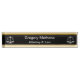 Classy Attorney executive desk name plate in high quality acrylic with classy black background and simulated gold metallic printed design elements that give this desk name plaque some character and style for any professional law office staff, lawyers, or executives.