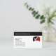 Classy cool automotive business cards for an automotive service created with car with a red black and white checkmark automobile graphic in the background and classic calling card layout with editable text you can customise online. Designed for an auto repair shop, mechanic, auto detailing, or automotive insurance.