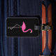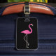 This classic black luggage tag is decorated with a fuchsia flamingo on the front, and all your personal information on the back, making it perfect for your next vacation.
