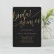 Make a bold statement with this chic bridal shower invitation, featuring a sleek black background that beautifully enhances the luxurious faux gold handwritten-style font. The back boasts a rich gold-tone finish, adding an extra touch of elegance and sophistication. Fully customisable, this invitation allows you to personalise the text, making it a unique and stylish way to announce the celebration. Perfect for both modern and classic bridal showers, it effortlessly blends refinement and charm to create an unforgettable event.