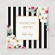 Classy Black Gold & Pink Flowers and Stripes Square Business Card