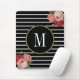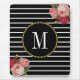 Classy Black Striped Antique Boho Floral Monogram Mouse Pad