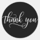 Classy Black White Script Calligraphy Thank You Classic Round Sticker