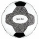 This soccer ball has a classy abstract pattern of black and white damask with fancy white scrolls. Customise your text in the white oval with the template.