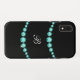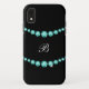 Classy monogram ladies smartphone case designed with simulated turquoise rhinestone jewels that are digitally printed on the case as artwork to mimic rhinestones in a glitzy bling style you can personalise online.