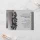 This fancy wedding invitation features a metallic silver background, sparkling silver glitter trim, and a jewelled blue and black flourish. The background is set for pale grey, but you can customise and change it to pure white or any other colour. Note: the glitter and jewels are a printed effect. No Zazzle products contain actual sequins, glitter, bows, etc.