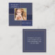 Modern and classy shades of blue and golden yellow geometric grid business card with photo and contact information.