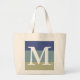 Classy Blue Khaki Striped Colour Palette Monogram Large Tote Bag