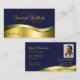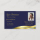 Classy Blue Wavy Gold Decor with Initials Photo Business Card