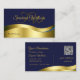 Classy Blue Wavy Gold Decor with Initials QR Code Business Card
