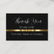 Budget friendly classy customer thank you business card size message of thanks created with a gold tone design element that adds just a touch of elegance in a two side design you can customise that editing your contact details on the flip side and thank your client for their order in style. Slip one of these into every gift bag, shopping bag, or place them in your post packages with their order. Available in bulk quantities or as few as 100 at a time in classic black with upscale look.