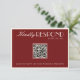 A classy and elegant calligraphy burgundy and cream retro old money QR code wedding rsvp card. That has a vintage and modern red background with cram script and hand written whimsical stylish wording. Luxurious and chic with handwritten lettering and scannable QR code in the center. It is all editable by clicking on the personalize button.