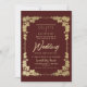This elegant, modern, design includes a classy burgundy and gold with printed gold handwritten typography and a floral frame border wedding invitations. This Wedding Invitation is the perfect print for any bride and groom's Wedding event. Customise this design with your details and monogram initial.