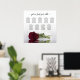 This 9 table wedding seating chart has table assignments for 90 guests at 10 people per table. The design is elegant, classy, romantic and chic, featuring a long stemmed burgundy, maroon, or wine-red rose reflecting in water with waves and ripples. There is a fancy script calligraphy title reading "please find your table" as well as space for the names of the couple and the wedding date. Great way to make your reception beautiful while helping your guests find the right seat.