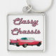 Large square premium metal keychain with an image of a classic pink Cadillac and the words “Classy Chassis” (50s slang) in 50s-style pink and black polka dot letters. See the entire Nifty 50s Keychain collection in the PARTY FAVORS section.