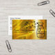 Classy business cards for a cleaning or house maid service created with a glitzy gold tone graphic background and spray bottle of cleaning solution image with your contact details organised in editable text on the flip side.