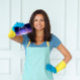 The cleaning service business card is decorated with gold-coloured cleaning supplies. Best for commercial or residential services for cleaning, housekeeper, maid service, home services, as well as janitorial supplies. florenceK design
