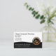 Classy compound pharmacy Pharmacist business card custom design template created with a gold tone mortar and pestal graphic. Designed for an online pharmacy or retail.