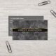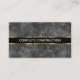 Classy construction theme business cards in an upscale editable design featuring your business name in a gold tone on black name banner with grunge stone background graphic. Promote your business by handing out your calling cards to clients and prospective clients.