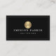 Elegant, black business cards featuring your custom logon on a printed image golden gradient circle and your name, title and subtle grey border on the front. Template fields for your contact information on the back.