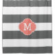 Classy Dark Grey and White Stripes with Monogram Shower Curtain