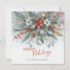 This holiday greeting card is distinguished by its elegant and unique design. It features a classic "Happy Holidays" greeting, which you can customize to your preference, set against a beautiful dark teal blue, white, and maroon red wreath bouquet pattern. The front of the card includes space for your family name and a seasonal message, while the inside provides an ideal area for adding a custom message or poem. It's a stylish way to send your holiday wishes.