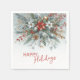 This beautifully designed holiday paper napkin features a classic "Happy Holidays" greeting, which you can customize to your preference, set against a beautiful dark teal blue, white, and maroon red wreath bouquet pattern. Its classy yet rustic design beautifully captures the essence of the December holiday season and appeals to those who appreciate artistic illustrations. The napkin also offers customization options, allowing you to personalize it with your custom greeting, making it a thoughtful choice for spreading holiday cheer.