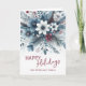This holiday greeting card is distinguished by its elegant and unique design. It features a classic "Happy Holidays" greeting, which you can customize to your preference, set against a beautiful dark teal blue, white, and maroon red wreath bouquet pattern. The front of the card includes space for your family name and a seasonal message, while the inside provides an ideal area for adding a custom message or poem. It's a stylish way to send your holiday wishes.