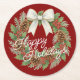 Classy December Wreath With White Bow Holiday Round Paper Coaster
