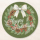 Classy December Wreath With White Bow Holiday Round Paper Coaster