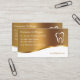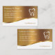 Classy Dentist business card with two side mirror design that displays your business info on both sides. Includes image of a tooth, modern simulated gold coloured background element, and text layout you can easily customise. Let's you hand out your business cards in style including two side printing.