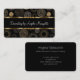 Classy trendy business cards for an Interior Designer, Decorating and staging services. Designed with stylish background art and features your name in an elegant banner decorated in gold tone design elements that help you stand out in style. A two side business card presented on high quality rounded corner business card stock.