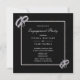 Stylish, elegant modern engagement party invitations in silver and black colours. With a shiny classy silver glitter frame encasing your event details, on a black background, with corner decorations off sparkly diamond wedding rings. All text is fully customisable to meet your requirements. If you would like help to customise your product, or would like matching products please contact me through my store and i will be very happy to help you.