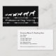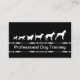 Classy dog training theme business cards with graphic canine variety of dogs and silver coloured design elements digitally printed on the front to ad a touch of class in a two side design that includes two side printing. Created for a professional Dog Trainer, canine obedience classes, or agility training.