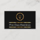 Upscale electrician classy business cards you can customise with simple but effective design that includes a gold tone digitally printed electrician logo emblem gold printed line accents, and great text layout. Best visiting cards for themes related to electrical work, electrician repairman or lighting services.