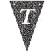 This flag shaped bunting banner says Happy 40th Birthday on a background pattern of classy elegant damask done in black and white with fancy white scrolls. Customise the birthday year with the templates.