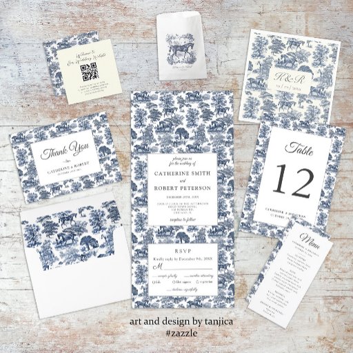 Blue toile pattern with horses and trees for your elegant wedding or any other type of stationary. The horse is a majestic animal that embodies the spiritual power of independence, freedom, nobleness, endurance, confidence, triumph, heroism and competition. Its symbol is associated with strength, courage and freedom.