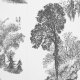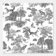 Monochrome toile pattern with wild forest animals - fox, deer, hare and trees for classy nursery, kids' room, bedroom