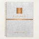 Luxury exclusive looking office or personal monogrammed 2026 planner featuring a faux copper metallic gold glitter square with your monogram name initials and a sparkling stripe over a stylish white faux leather background. ++++++++++++++ Suitable for small business, corporate or independent business professionals, personal branding or stylists specialists, makeup artists or beauty salons, boutique or store managers. +++++++++++++++ Please note that the leather texture and glitter sparkle effects are PRINTED.