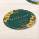 Classy Emerald Green Gold Floral Wedding Welcome Round Paper Coaster