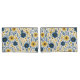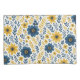 This beautifully arranged classic Mediterranean botanical flower design features a vibrant pattern of yellow and dark blue flowers and leaves on a crisp white background. The design is ornate, stylish, and eclectic, making it appealing to artistic crafters and enthusiasts of vintage retro styles. It is available on a variety of modern decor products such as fleece blankets, lamps, and bedding.